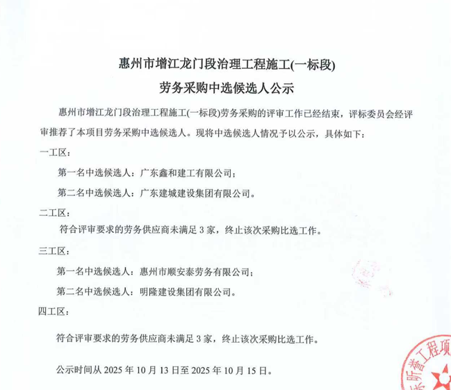 惠州市水電建筑工程有限公司勞務供應商庫擴庫評審結(jié)果公示……